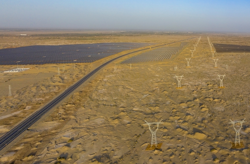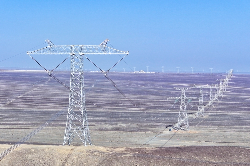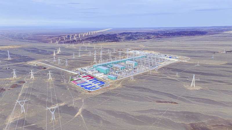 9月22日在新疆巴音郭楞蒙古自治州若羌县拍摄的三峡集团“疆电外送”第四通道电源项目施工现场(无人机照片)◈ღ。