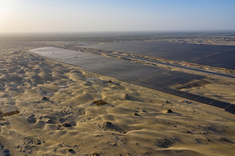 9月22日在新疆巴音郭楞蒙古自治州若羌县拍摄的中国绿发新疆中绿电若羌400万千瓦光伏项目(无人机照片)◈ღ。该项目每年可发电69.08亿千瓦时◈ღ,满足南疆200万户家庭用电需求◈ღ。