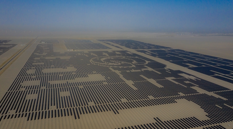昔日的戈壁荒漠◈ღ,如今由太阳能光伏板汇聚成“蓝色海洋”◈ღ,由风力发电机组成“白色森林”◈ღ,正孕育着无限“风光”◈ღ。